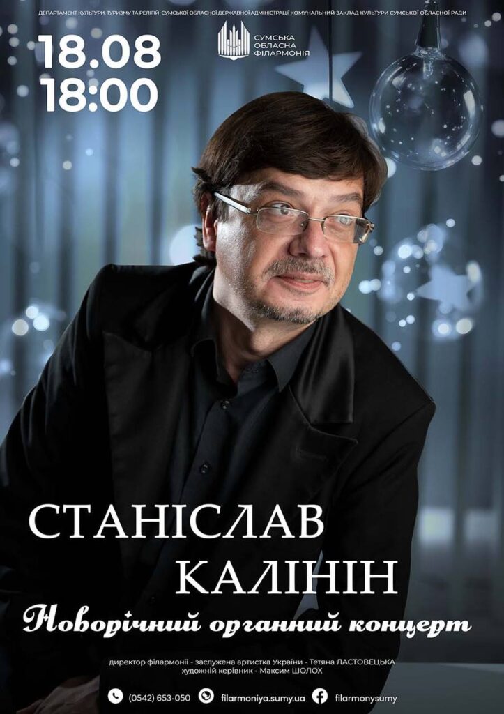 Запрошуємо вас на святковий органний концерт за участі видатного українського музиканта, заслуженого артиста України — Станіслава КАЛІНІНА (м. Харків)! Відомий органіст, майстер віртуозної техніки та тонкого художнього смаку, Станіслав Калінін...