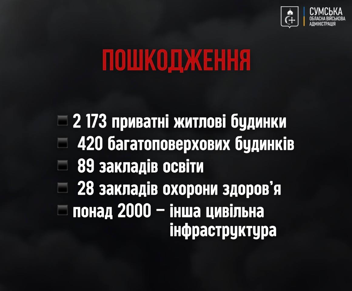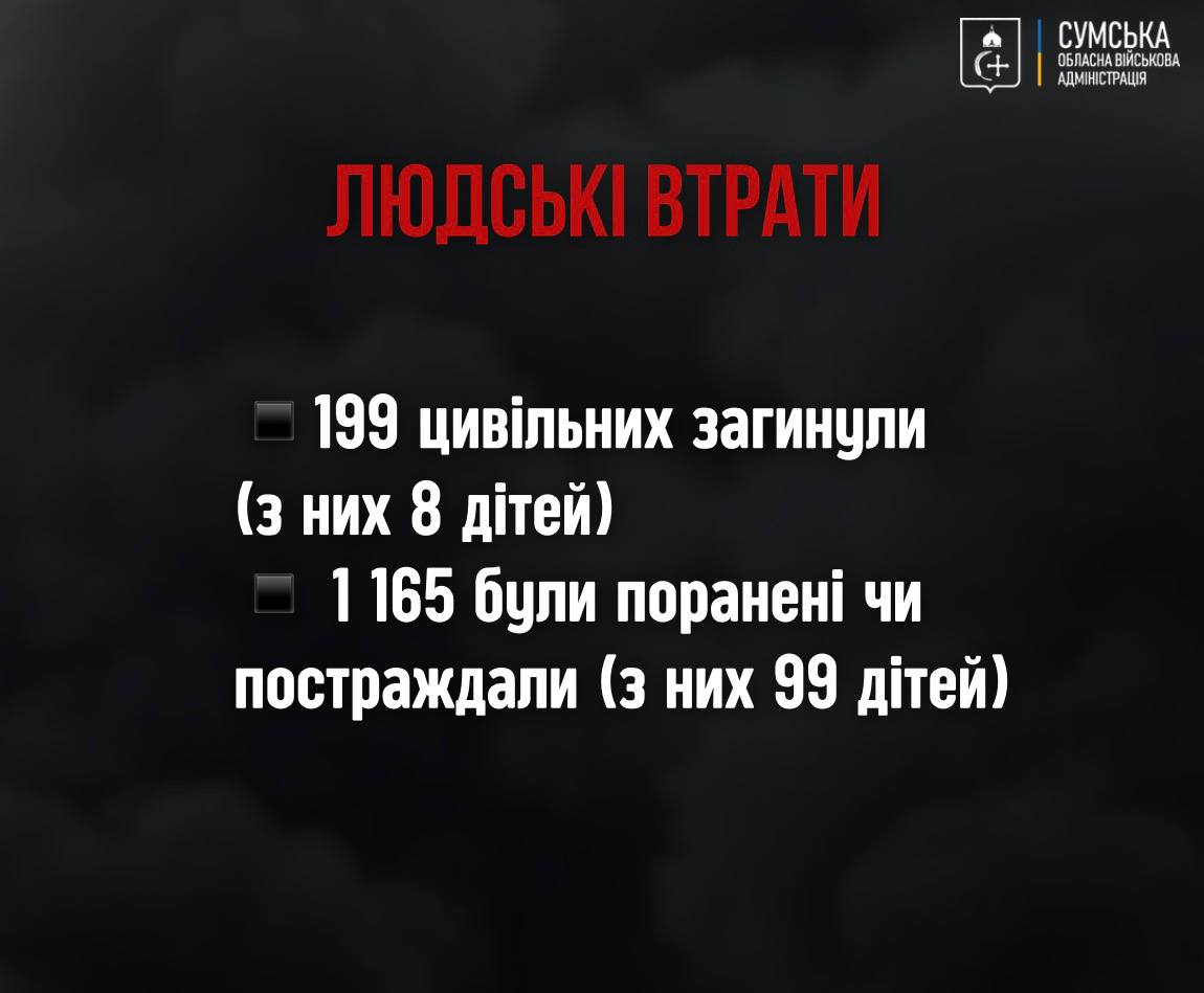 За офіційними даними, у 2025 році внаслідок російської агресії загинули 199 мирних мешканців Сумщини.