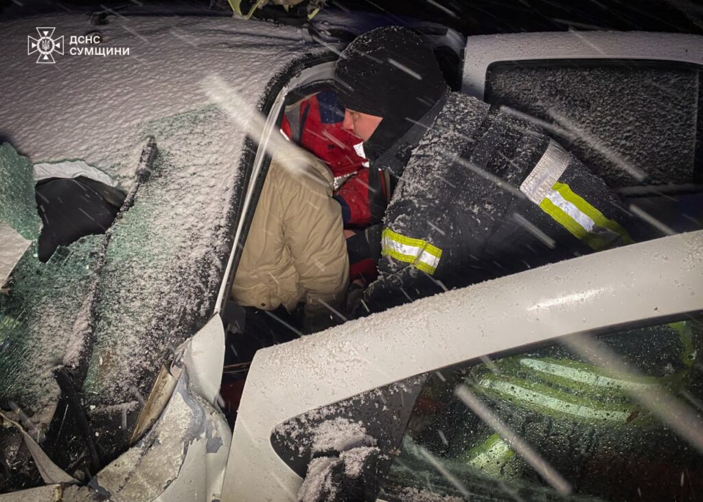 Наслідком негоди стала й серйозна дорожньо-транспортна пригода в обласному центрі. Учора у Сумах рятувальники залучалися до ліквідації наслідків ДТП, у результаті якої людину затиснуло в деформованому автомобілі.