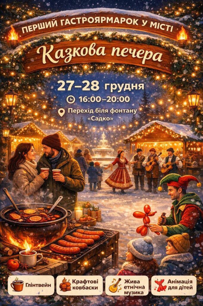Тож усіх охочих запрошують у суботу та неділю до «Казкової печери» на перший гастрономічний ярмарок, де можна буде не лише посмакувати місцевими стравами та напоями, а й відчути святковий дух.