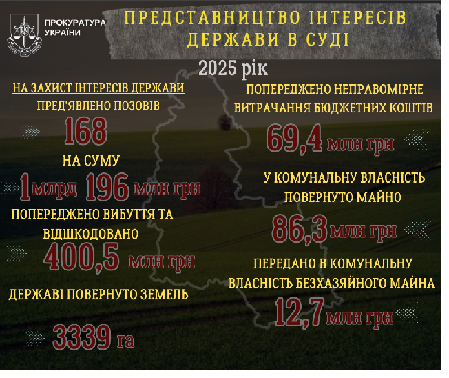 Прокуратура Сумської області прозвітувала про результати представницької діяльності у 2025 році. Завдяки втручанню правоохоронців до бюджетів та у власність громад повернуто сотні мільйонів гривень та величезні площі земель.