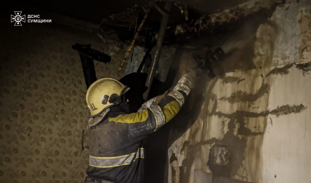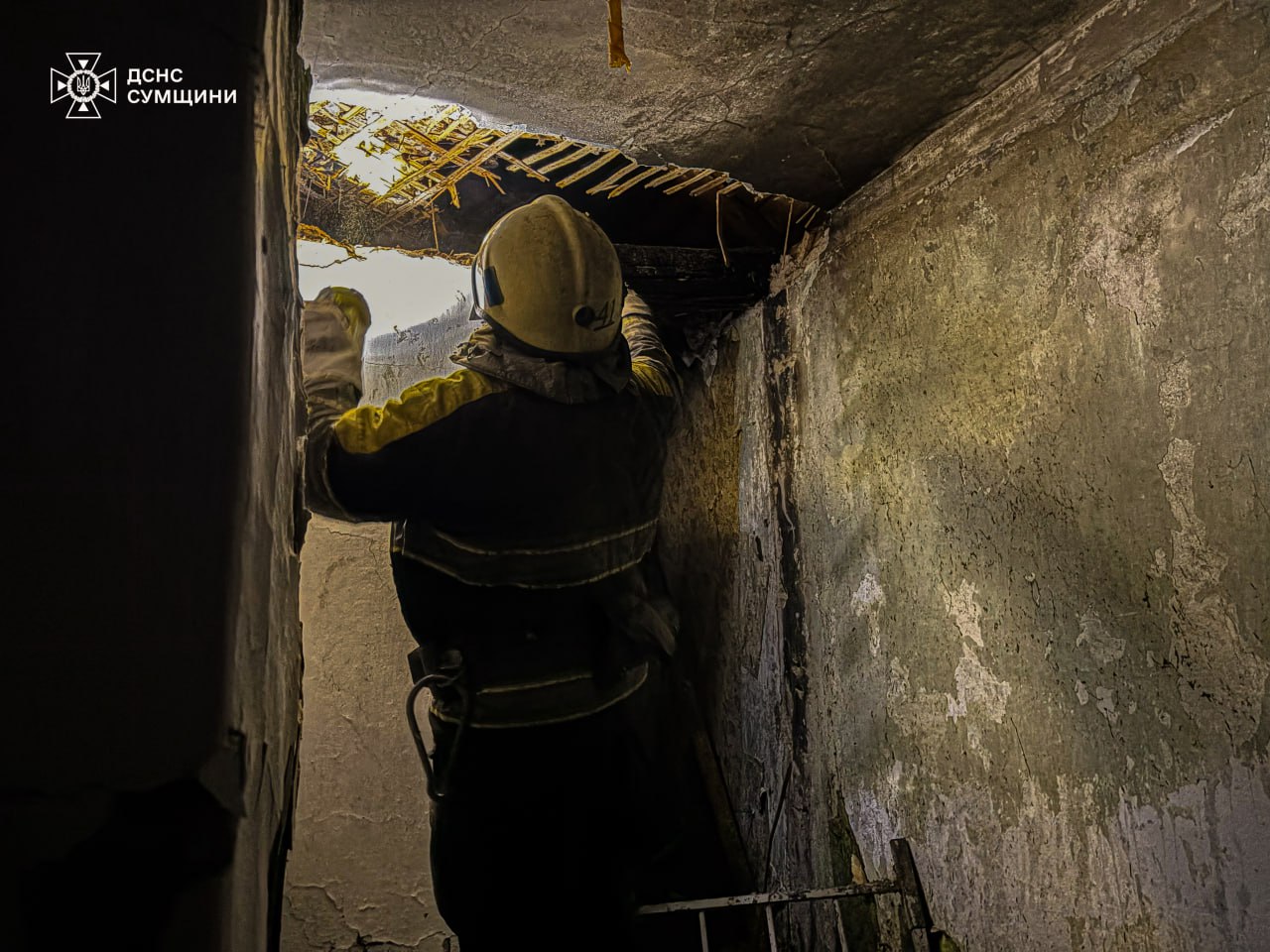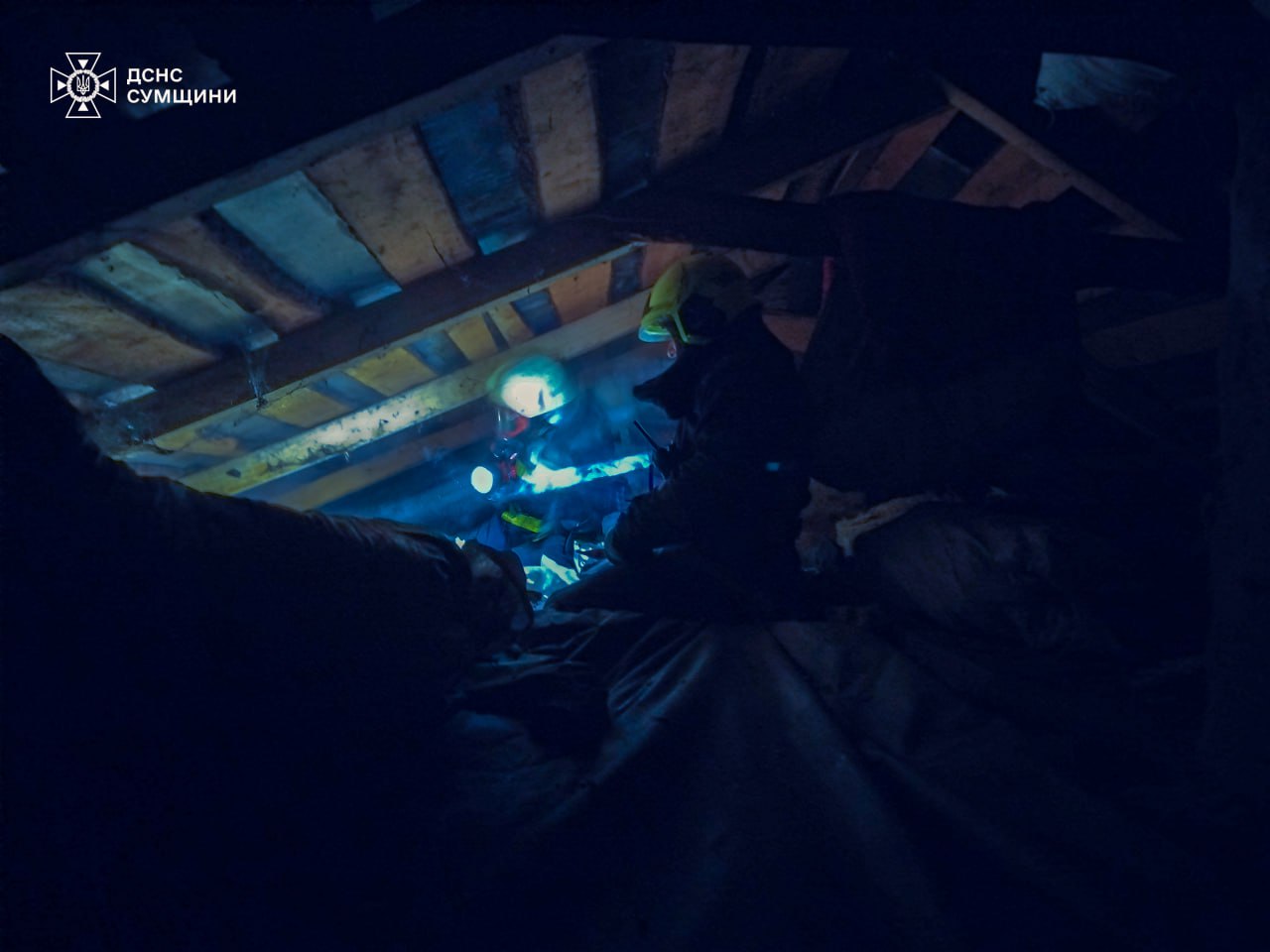 Схожий випадок стався у селі Камінь на Кролевеччині. Там вогонь також пошкодив перекриття на площі до 5 кв. м. До гасіння, окрім державних підрозділів ДСНС, долучилися працівники місцевої пожежної команди. Спільними зусиллями оселю вдалося вчасно відбити у вогню.