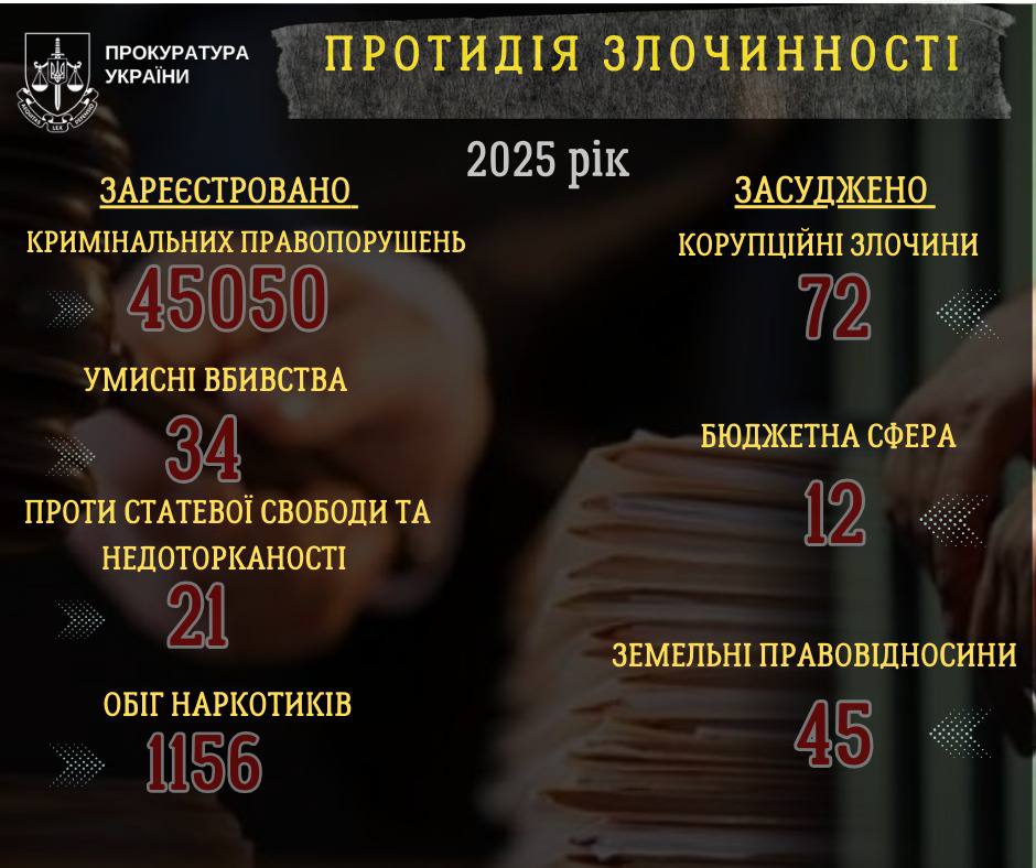 Загалом у 2025 році зареєстровано 45 050 кримінальних правопорушень, зокрема: