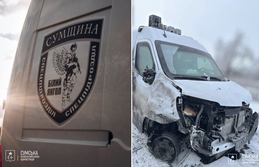 Під час евакуації людей із прикордонної території Шосткинського району ворожий дрон атакував автомобіль спеціального підрозділу поліції «Білий янгол».