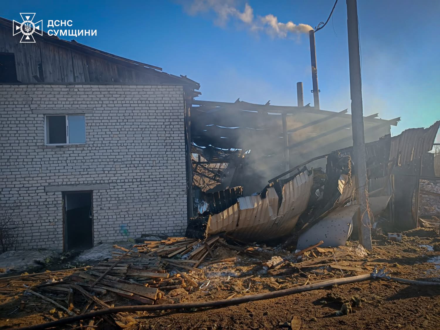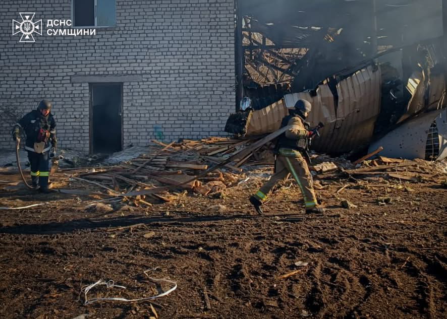 Руйнувань зазнало одне з місцевих підприємств, виникла пожежа.