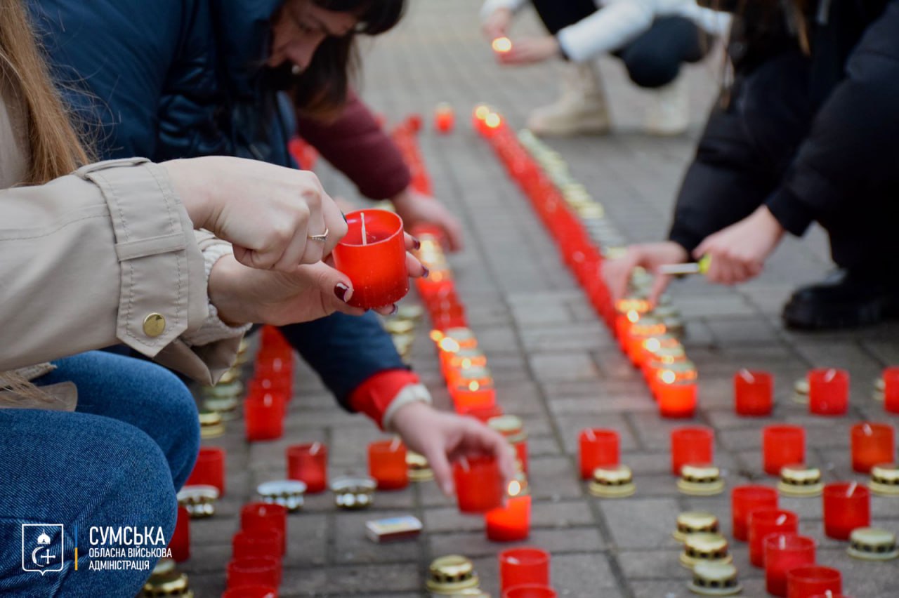 У четверту суботу листопада о 16:00 в Сумах відбулася щорічна акція «Запали свічку пам’яті», до якої долучилися представники влади, громадськість та небайдужі мешканці області. Про це повідомляє Сумська обласна військова адміністрація.