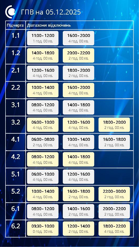 АТ «Сумиобленерго» повідомляє про оновлення в застосуванні графіків погодинних відключень електроенергії на території області. Зміни впроваджені відповідно до обсягів лімітів, доведених НЕК «Укренерго».