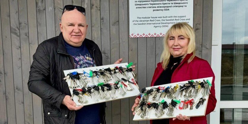 Мова йде про перші два будинки на 32 квартири, які збудував Червоний Хрест за підтримки міжнародних партнерів. Ці приміщення вже готові до експлуатації та призначені для тих, хто через війну залишився без даху над головою.