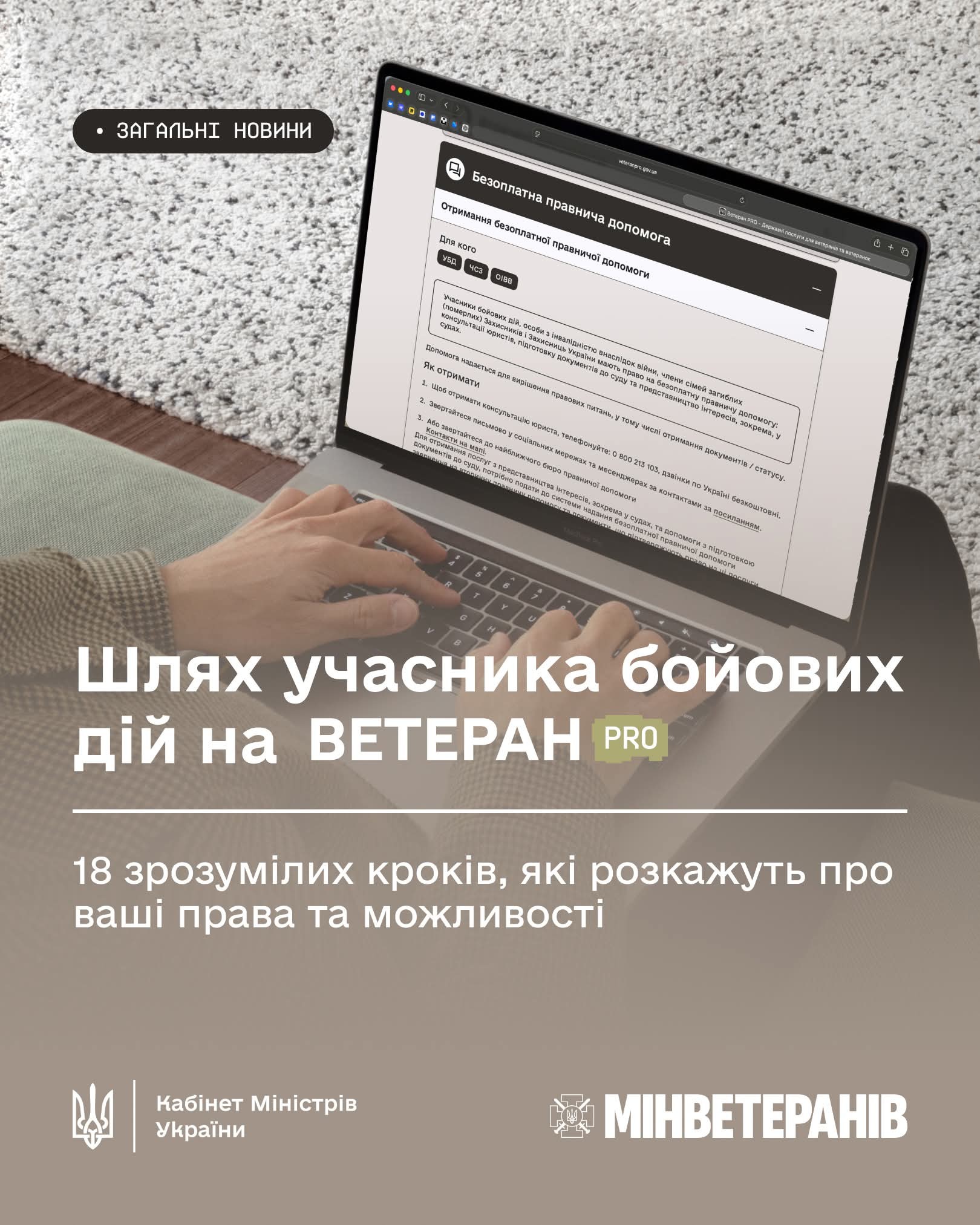 Як інформує Міністерство у справах ветеранів України, «Ветеран Pro» — це зручний онлайн-сервіс, що крок за кроком супроводжує ветеранів і ветеранок у вирішенні ключових питань після повернення з фронту.