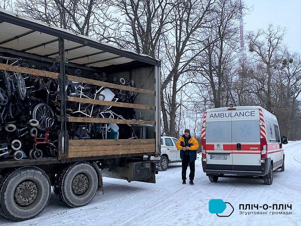Тростянецька міська лікарня отримала потужний гуманітарний вантаж завдяки співпраці громад у межах ініціативи «Пліч-о-пліч: згуртовані громади».