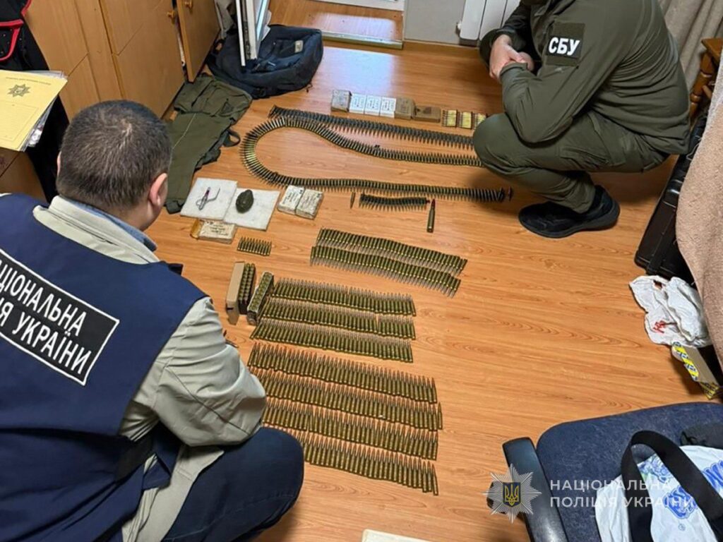 Під час санкціонованого обшуку поліцейські вилучили корпус ручної гранати Ф-1 із запалом та понад 500 набоїв калібру 7,62 мм. Експерти підтвердили, що боєприпаси бойові та придатні до використання.