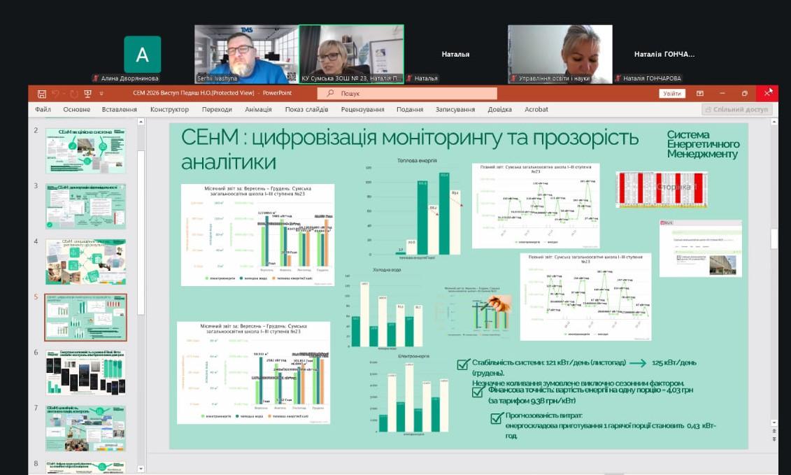 У Сумській громаді успішно пройшов черговий аудит системи енергетичного менеджменту (СЕнМ), який підтвердив її ефективність та стабільну роботу.