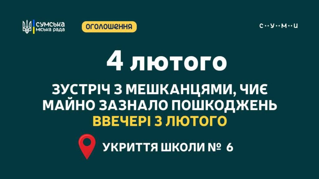 У Сумській міській раді мешканців закликають не зволікати та звертатися для фіксації пошкоджень і отримання необхідної допомоги.