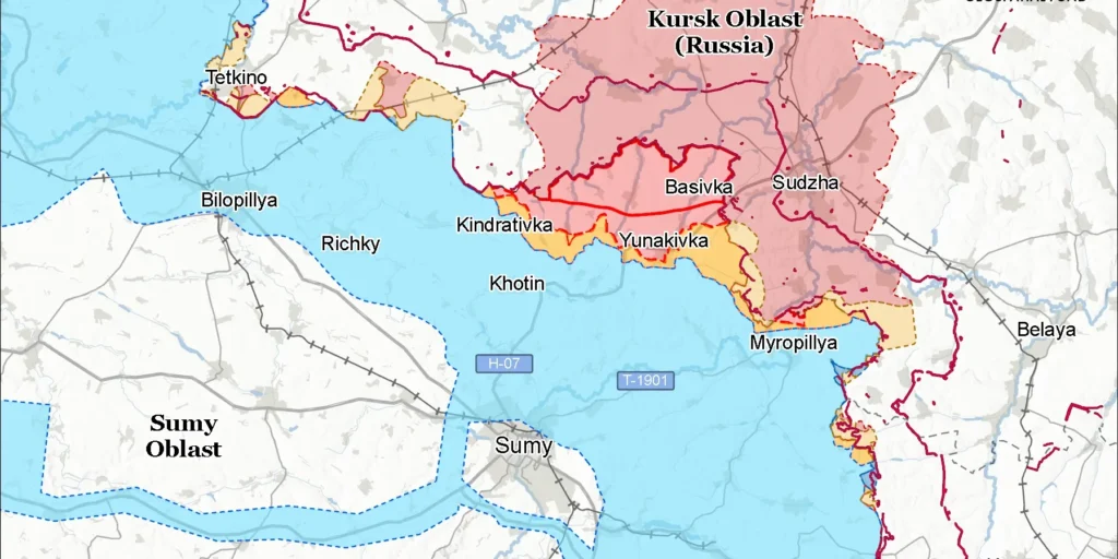 Російські війська протягом 9–10 січня здійснювали атаки в Курській та Сумській областях. Бойові дії тривали на північ від Сум у напрямку Малої Корчаківки, на північний схід — у бік Миропілля, а також на південний схід від обласного центру поблизу села Грабовське. Про це йдеться у новому звіті Інституту вивчення війни (ISW).