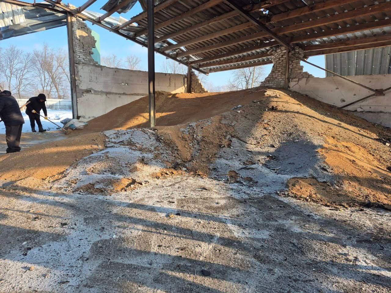- вогнем та вибухами знищено склади для зберігання зерна, а також господарські будівлі, де знаходилося дрібне обладнання.