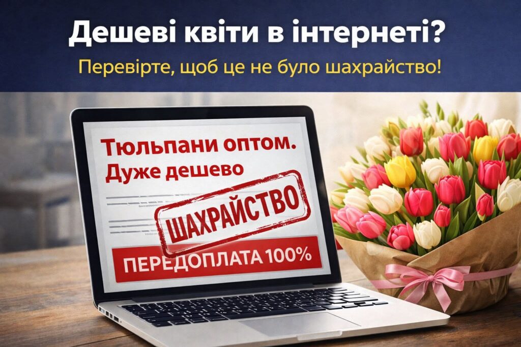 - Шахраї публікують привабливі пропозиції про продаж тюльпанів та інших квітів значно дешевше ринкової вартості.